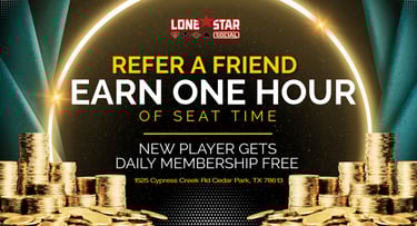 Are you ready to test your skills, bluff your way to victory, and win BIG? Look no further! Lone Star Social invites you to join us for an unforgettable gaming experience. Whether you're a seasoned pro or a beginner, there's a seat at the table just for you. Cash games and Poker Tournaments.